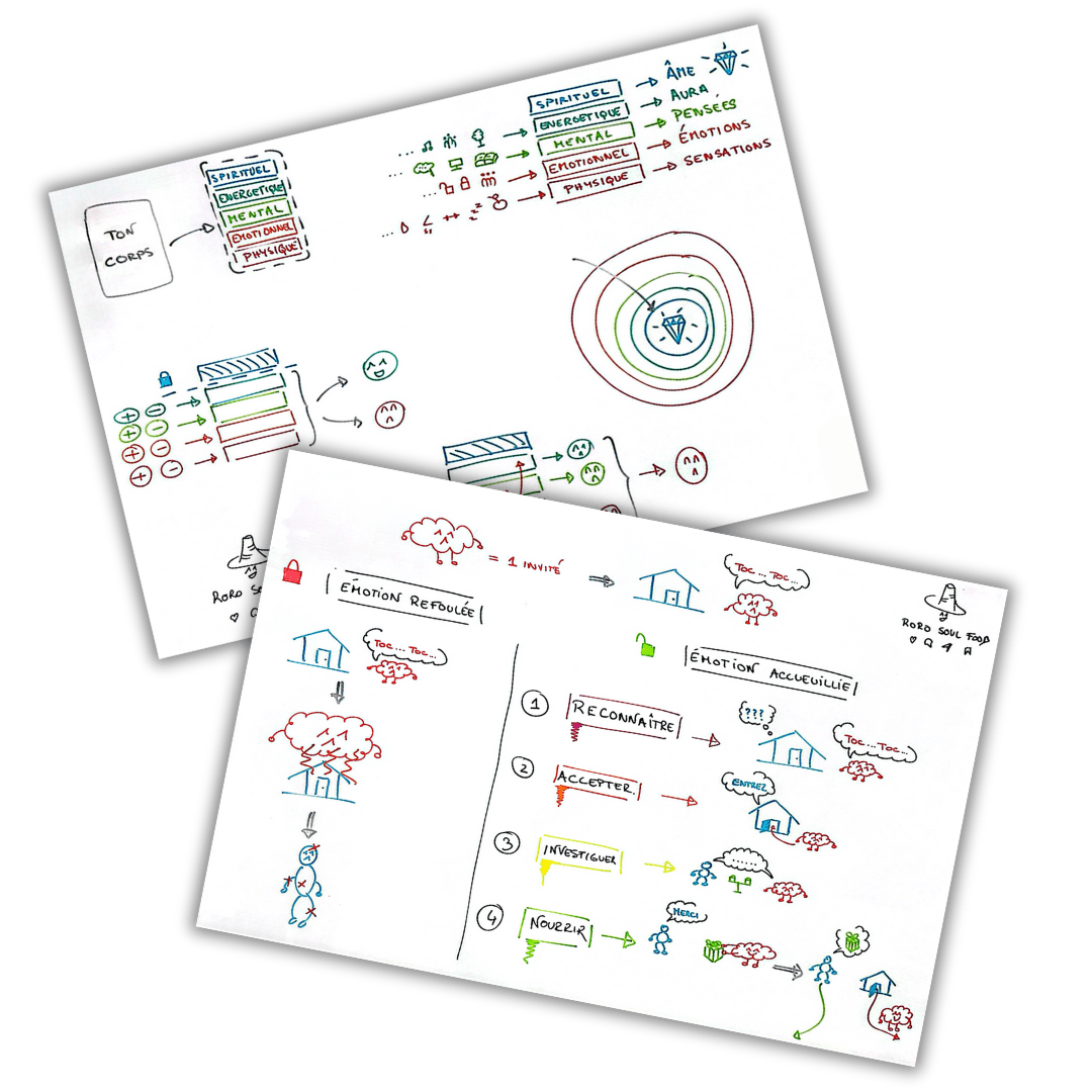 À travers mes croquis, je te partage non seulement mon parcours d’auto-guérison, mais aussi plein d’astuces pour te reconnecter à tes 5 corps, ton don et ta mission.
